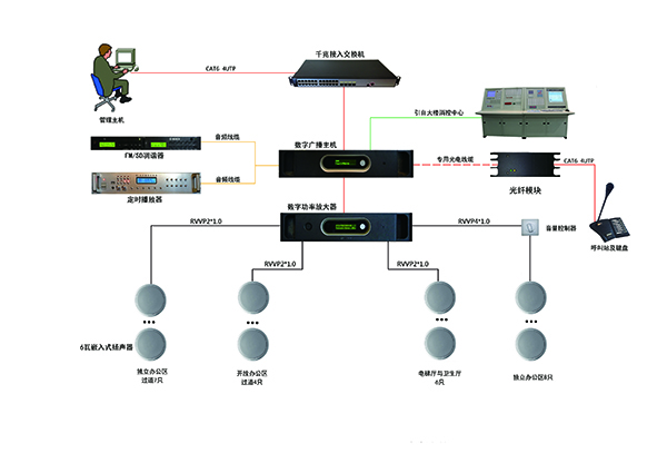 近年來,辦公大樓、購物中心和其他大規模建筑工程對于公共廣播系統能夠具備呼叫分配、播音、背景音樂及對建筑物內的特定區域進行常規信息播放的功能之要求日益增加。科海辦公樓廣播系統的設計,順應潮流和科技發展趨勢,從投資合理、外觀美觀、設計規范的設計原則出發,要求廣播系統具備如下功能:①兼顧背景音樂、公共廣播、消防廣播的功能;②全數字結構;③結合防火分區劃分廣播分區;④各廣播分區獨立音源、獨立廣播;⑤緊急廣播具備優先控制權。
